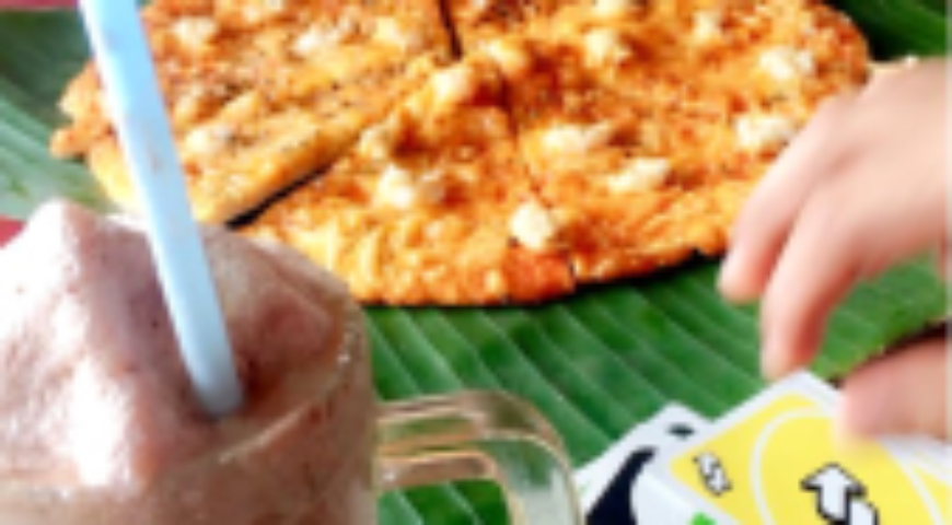 At Namaste rock Beach cafe on Kudle Beach, the Prawn Pizza which is actually served on a banana leaf , the Nutella ice shake (obvio) and the seafood lasagna.